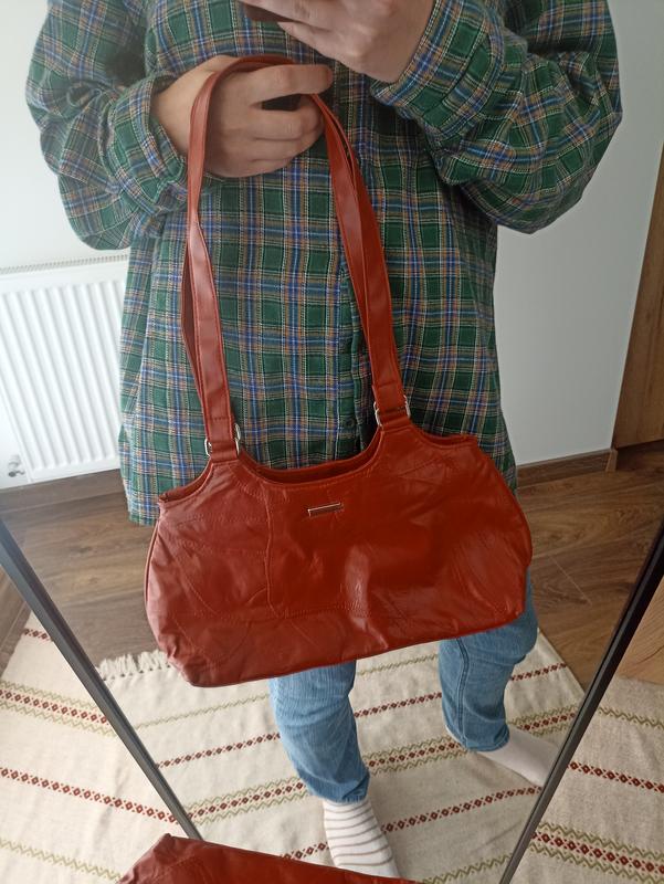 насыщенный красный цвет, на замочке, внутри еще один карман на замке, Ширина 38, высота 19, длина ручек 30, ширина дна 11