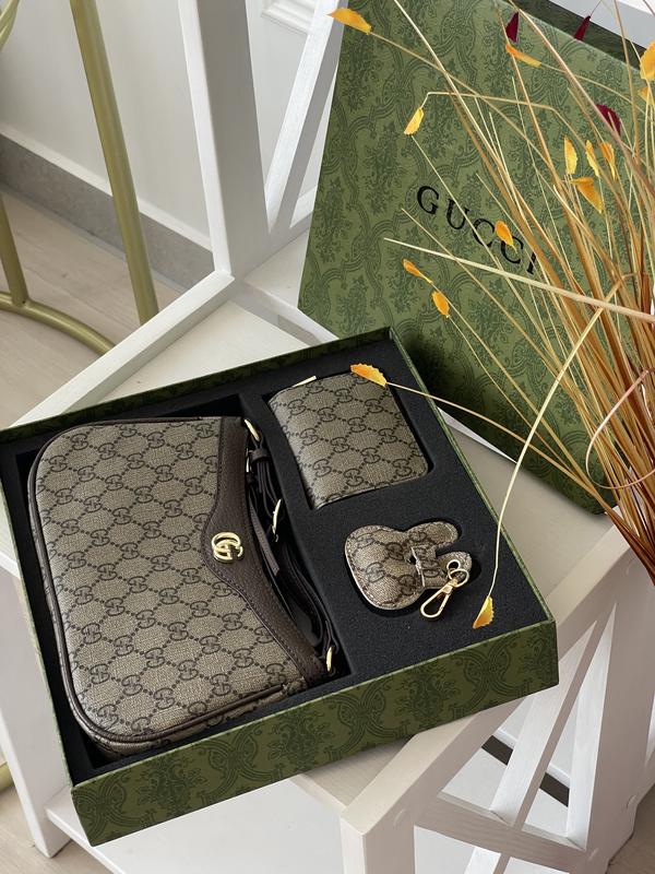Подарунковий набір Ophidia - 3 предмети Комплектація: Сумка: 1 шт Брелок: 1 шт Гаманець: 1 шт Сумка виготовлена еко-шкіри з структурованим тисненням. Всередині одне велике відділення та карман. Є лого з тисненням та бірка з QR. Зручний і стильний кардхолдер на блискавці з внутрішніми відділеннями у вигляді «гармошки». Виготовлений з щільного матеріалу, оснащений якісною золотистою блискавкою. Всередині — 11 відділень для карток, візиток, купюр або дрібниць. У комплекті також брелок - брелок від Ophidia. Матеріал: еко-шкіра, тримає форму. Розмір сумки: 25 * 14.5 * 5см Плечовий ремінь: 56см регулюється Гаманець: 11.5*8см Ключниця: 11см висота. ⭐️ Коробка, пильник, документи в комплекті код: коричневий 20569-1