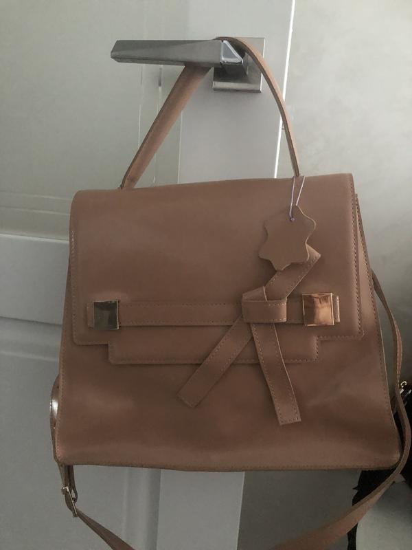 Сумка із натуральної шкіри, вмістка, має подовжений ремінець, колір бежевий.