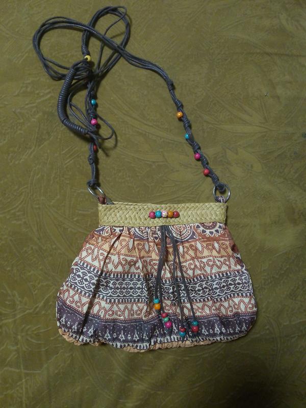 Тряпная сумка на подкладке. Длинная ручка через плечо. Застегивается на молнию. Соломона всиавка. НОВА. Бусинки деревянные.