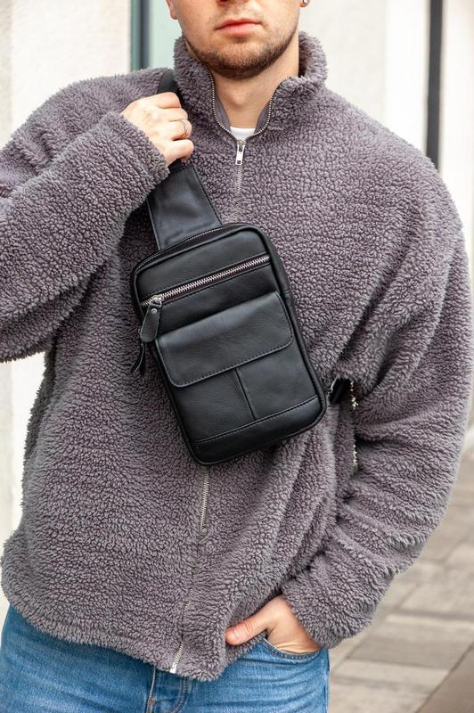 Натуральная кожа Размеры 25х18 см 3 передних внешних кармана (1 на магнитах) 1 задний внешний карман 1 внутренний карман за молнии Ремень регулируется на разные стороны