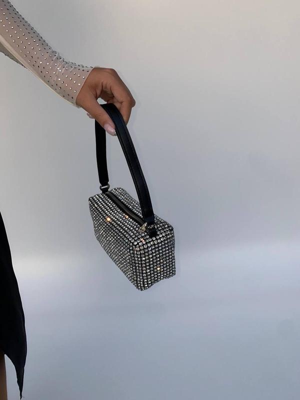 Сумочка Код 650 Колір : срибний 🖤 Матеріал: текстиль Висота без ручки 11 см довжина 19 см (В комплекти довга ручка )