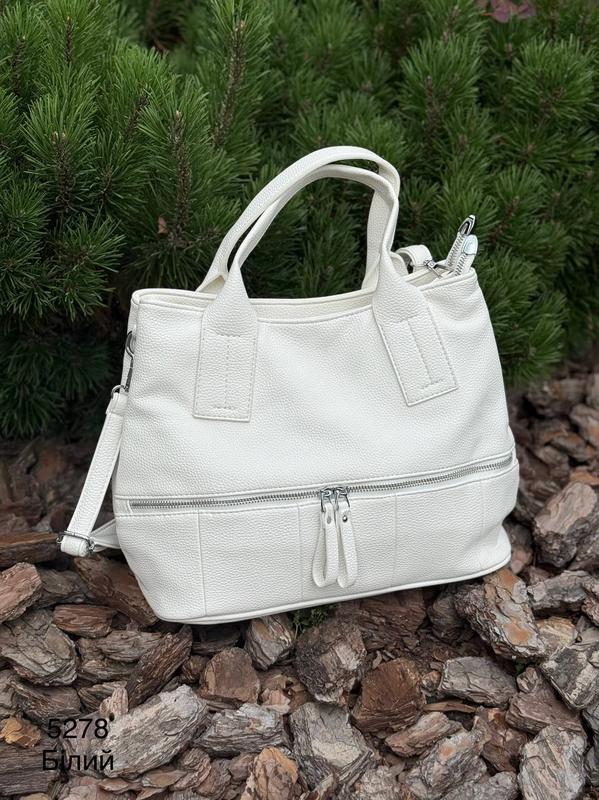Женская сумка на два отделения белая средняя из искусственной кожи кожзама через плечо с д...