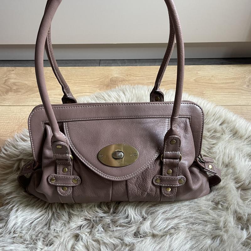 Шкіряна сумка в ідеальному стані.Є пляма на останньому фото,не виділяється .Можливо відтерти при бажанні . Заміри: висота 22 ширина 35 глибина 11 висота ручок 30 см