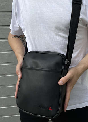 Сумка чоловіча чорна reebok еко шкіра, барсетка шкіряна, сумка через плече