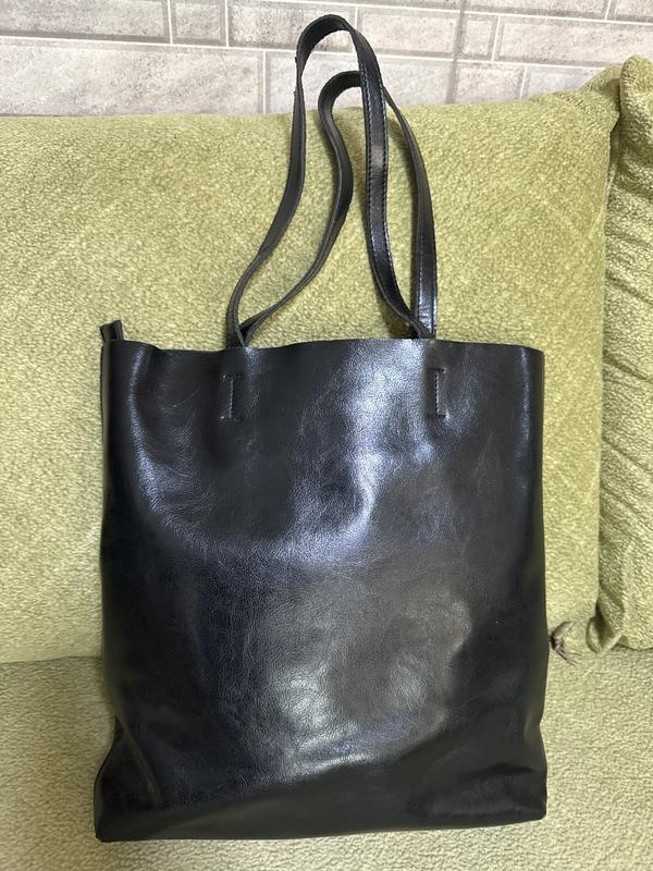 Розмір 31*37*5 по днищу сумки. При купівлі на сайті було заявлено, що сумка шкіряна. По факту, я думаю, що шкіра штучна. Сама сумка в доброму стані, трохи потерлися ручки. На фото все видно, всі дефекти сфотографувала.