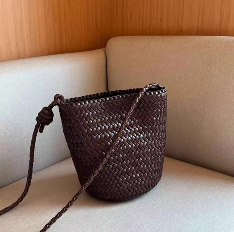 Сама актуальная сумка сезона, плетеная, форма больше похожа на ведро. Очень качественное ручное плетение, материал кажется не кожа но очень похож. Красивый цвет шоколад