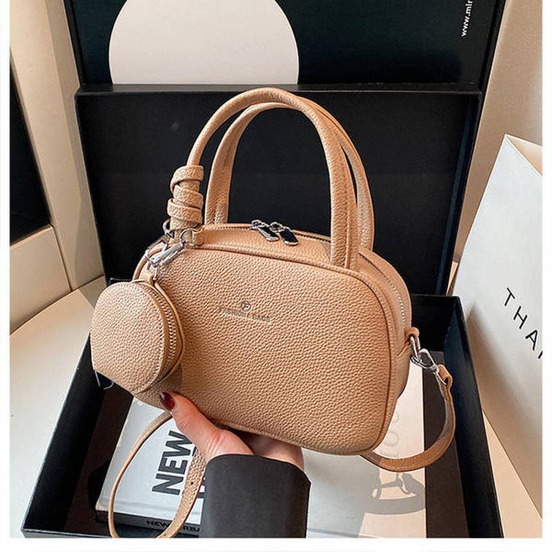 Маленькая женская сумочка бежевого цвета, базовая бежевая сумочка с короткими ручками.