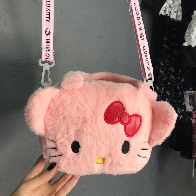 Сумка hello kitty, плюшева сумка punk, opium, emo, y2k, альт, гранж, рок, рейв, готика, cy...