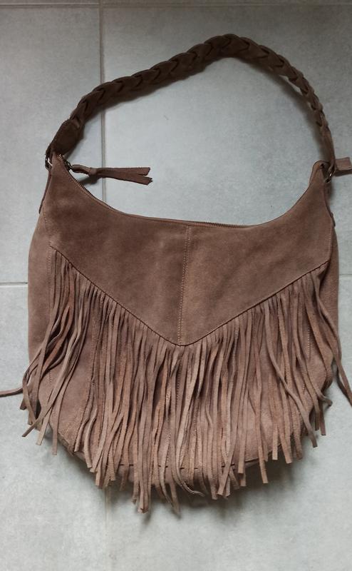 Сумка с бахромой красивого цвета натуральная замша, кожа в идеальном состоянии