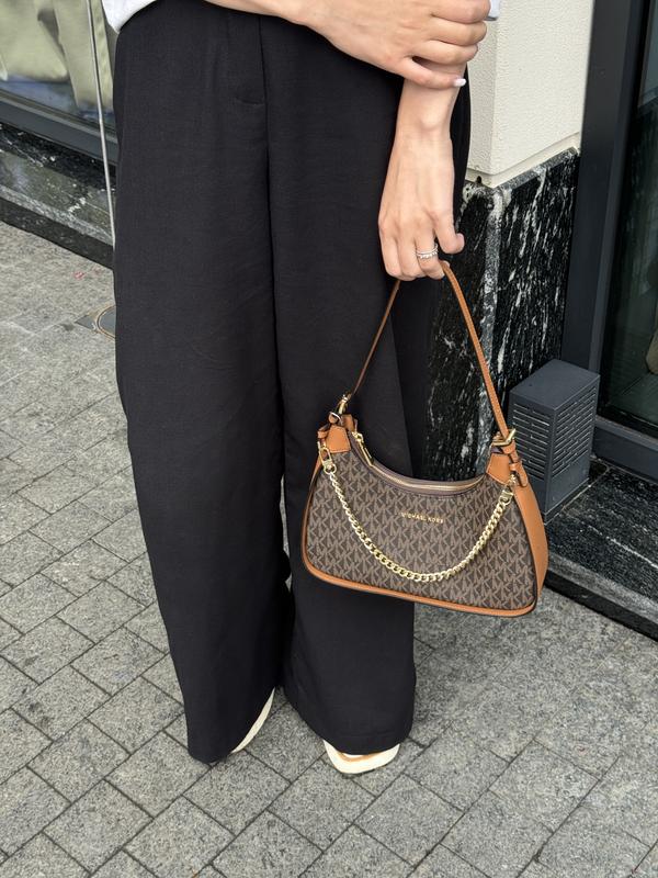 ❤️ Michael Kors Wilma Signature Logo Crossbody Bag ⏺ Ціна 2900грн ⏺ Розмір: 27.5 x 21 x 6.5 см ⏺ Матеріал: Шкіра Сумка виконана з гладкої шкіри з фірмовою канвою. Всередині одне велике відділення, також є кишеня з фірмовою нашивкою. Підкладка з щільного текстилю у фірмовому дизайні. Фурнітура металева, брендована. Ланцюжок металевий, фіксованої довжини, на карабінах. Шкіряна ручка для носіння у руці та через плече має невеличкий діапазон регулювання. Комплектується в брендовій коробці та пильовику.