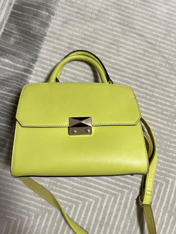 Сумка середнього розміру яскравого салатового кольору. Два відділення і кармани