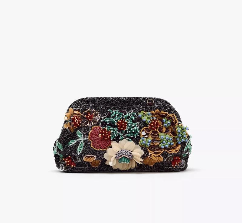 Сумка из бисера. Контрастные цветные рисунки. Съемная ручка-цепочка из металлических колец в форме ремешка через плечо. Внутренний карман и внутренняя подкладка. Застежка на клипсу. Высота x Ширина x Глубина: 15 x 23 x 7 см.