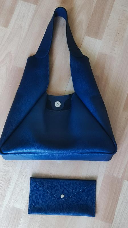 Мягкая, прочная с приятной текстурой сумка и кошелек. Натуральная кожа. Сумка закрывается магнитной кнопкой. Размер сумки: 28х20х11 см. Кошелек 19х10 с одним отделением для телефона, документов, купюр. Индивидуальный пошив.