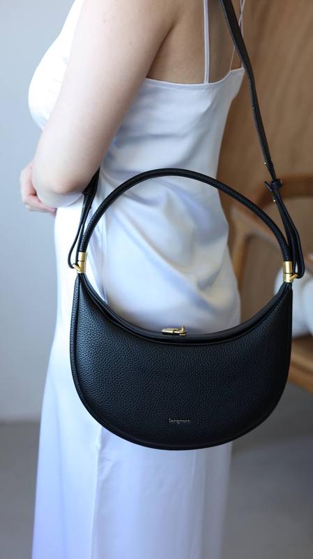Розмір: 26,5x7x23 🔗 Матеріал: шкіра Сумка виготовлена з матової текстурної шкіри. Її округла форма, натхненна силуетом місяця, надає образу м’якості та елегантності, а досконалий баланс між естетикою та практичністю робить її незамінною в повсякденному житті. Всередині має одне відділення. Також в середині є відкрита кишенька на магніті. Підкладка з шкіри. В комплекті плечовий шкіряний ремінець, який регулюється по довжині та ручка для носіння в руці. Сумочка - трансформер має чотири варіанти носіння. Фурнітура брендована, металева, вінтажного золотистого кольору. Пакування: брендова коробка, пильовик.