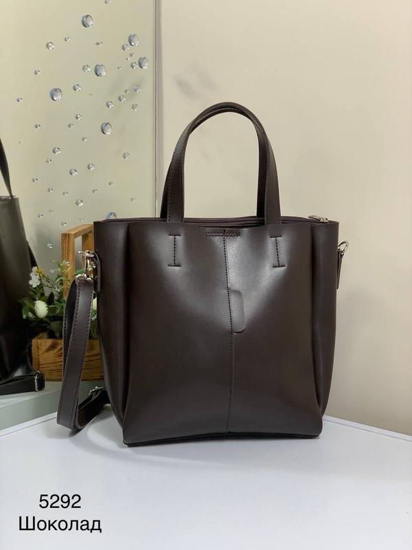 Наявність уточнюйте Класична сумка на 3 відділення Кольори: чорний, бежевий, капучино, бордо, шоколад. Матеріал: екошкіра Туреччина Розміри: Ширина по дну 26 см. Ширина по верху 32 см. Висота 29 см. Глибина 11 см. Три відділення. Основне центральне відділення на блискавці. Всередині нього кишеня на блискавці та відкриті кишені. З обох боків сумки два відділення на магнітних кнопках. В комплекті довгий регульований ремінь.