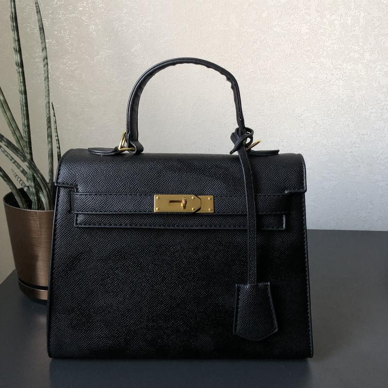 Квадратна класична сумка в чорному кольорі. Всередині дві кишені,одна с них на блискавці. Золотиста фурнітура з подряпинами.