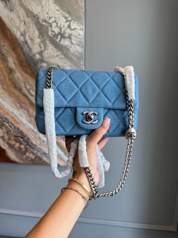 Chanel Mini Classic Flap Bag in Quilted Blue Denim with Silver-Tone Hardware Арт. 7865 • Матеріал : джинс • Розмір : 19х14 • Один основний відділ • Повний комплект