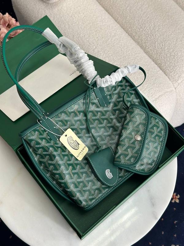 Сумка двостороння tote goyard смарагдового кольору зелена шкіряна