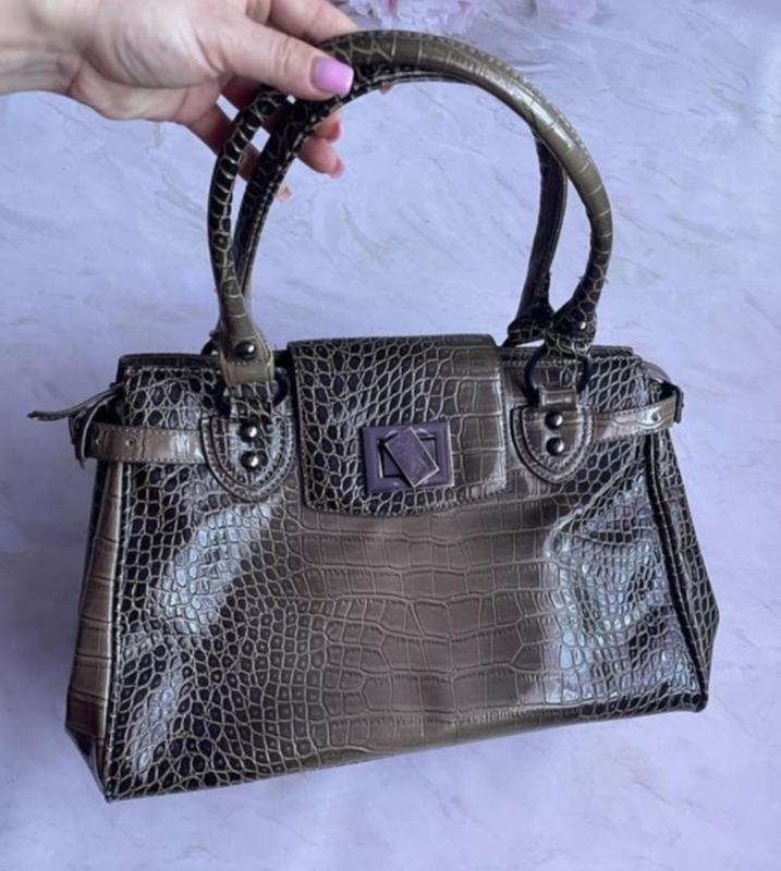 Стильная женская сумка с тиснением под крокодилью кожу Предлагается элегантная и практичная сумка, которая идеально дополнит любой образ. 🔹 Цвет: оливково-коричневый с глянцевым блеском 🔹 Материал: экокожа с тиснением под крокодилью кожу 🔹 Размеры: средний Длина 25 Ширина 38 Дно 13 Ручка 17 🔹 Застежка: клапан с декоративной пряжкой 🔹 Ручки: двойные, удобные для ношения в руке или на предплечье 🔹 Состояние: в отличном состоянии Идеальный выбор для стильных женщин, которые ценят качество и утонченность. Подойдет как для ежедневного использования, так и для особых событий. ОБРАТИТЕ ВНИМАНИЕ АКЦИЯ ❗️❗️ При заказе двух товаров 3-й самый недорогой в подарок 🎁🎁🎁