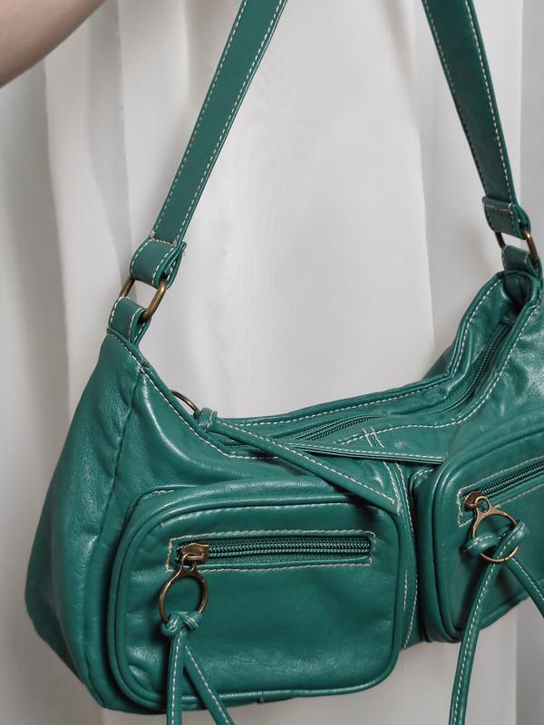 зелена сумочка искусственная кожа очень стильная без дефектов Ширина 33 высота 16 Цепочка 45