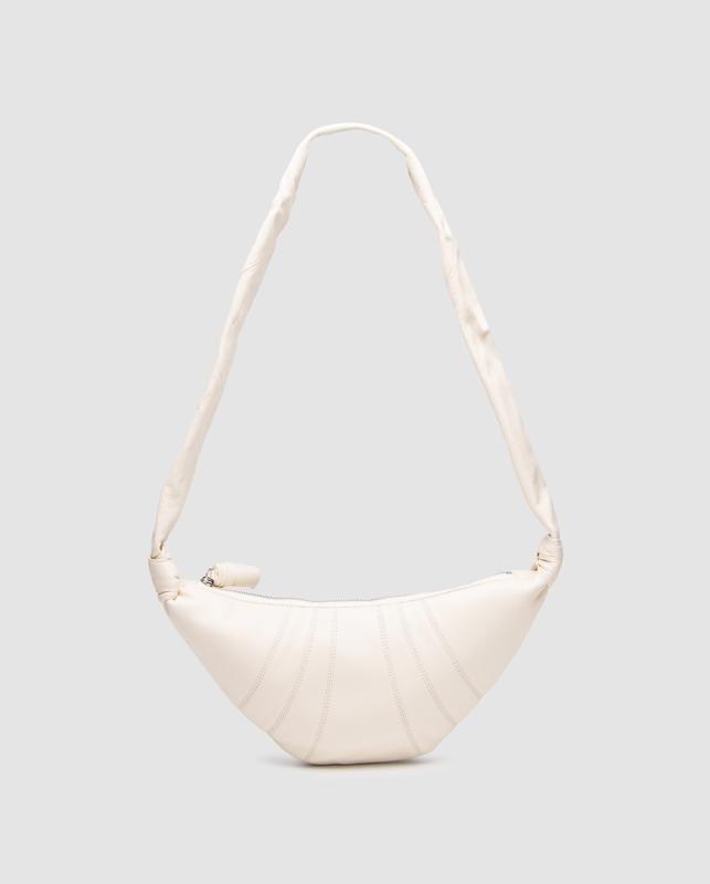❤️ Croissant Bag White (Арт: 99939) ⏺ Розмір: 34 х 16 х 5 см ⏺ Матеріал: Шкіра Сумка виготовлена з текстурної мʼякої шкіри. Всередині одне основне відділення, також додаткова кишеня. Підкладка всередині сумки з текстилю, є шкіряна нашивка з тисненням. Фурнітура металева. Зачиняється на застібці. Має шкіряну ручку середньої довжини. Комплектується у брендовій коробці кришка-дно та пильовику, є буклети.