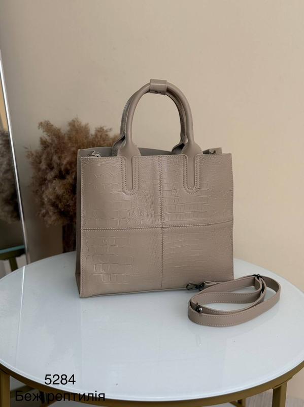 Код 5284 Екошкіра Туреччина (гладка та рептилія) 32х28х11,5 В комплекті довгий регульований ремінь. Три відділи: один (середній) на блискавці. Всередині кишеня на блискавці та дві відкриті кишені. Два відділи відкриті.
