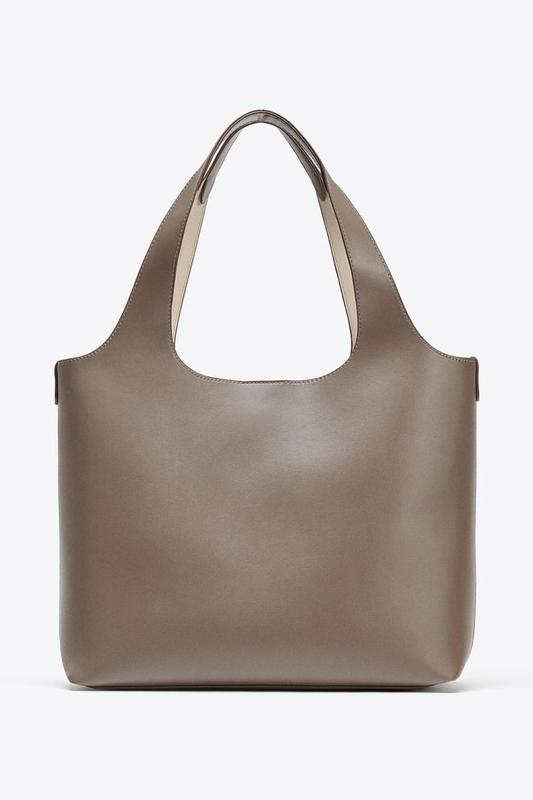 Сумка-шоппер на плечо. Две широкие ручки. Внутренний карман на металлической молнии. Магнитная застежка. Высота x длина x ширина: 31 x 28 x 13 см.
