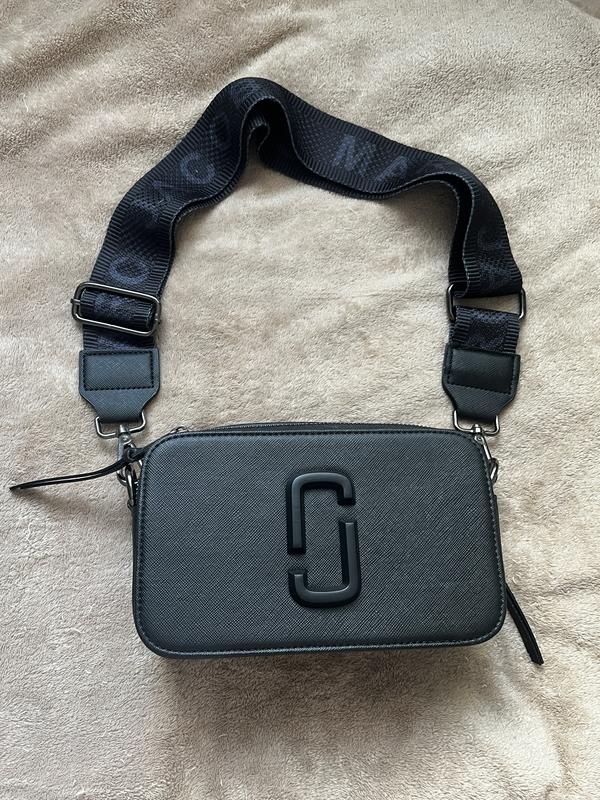 Стильна компактна сумка Marc Jacobs The Snapshot. Натуральна saffiano шкіра, подвійна блискавка, знімний широкий ремінь з логотипом. Ідеально підходить для щоденного носіння — практична, містка, впізнаваний дизайн. • Колір: чорний • Стан: відмінний • Ремінь: регульований, знімний