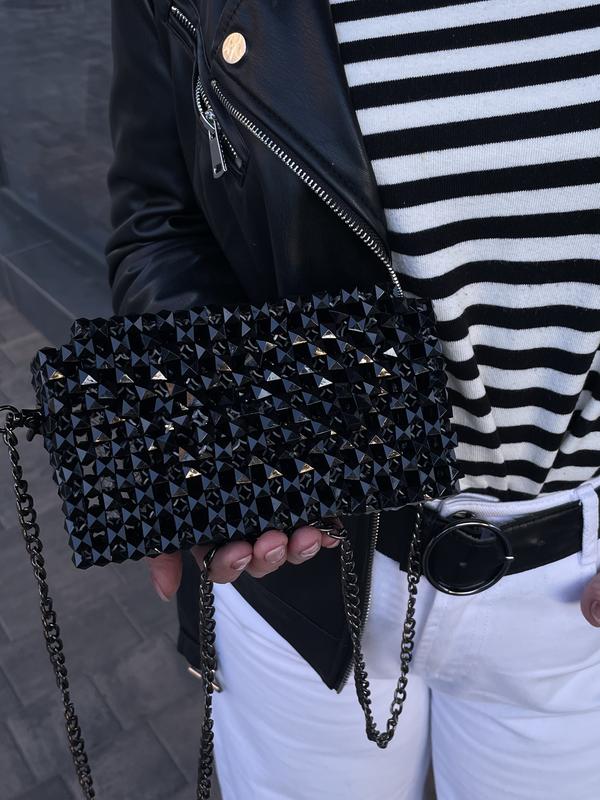 Сумка із бусин чорного кольору, з ланцюжком і застібкою, ручна робота. Я майстер і можу зробити сумочку із бусин будь якого кольору і на будь який смак. Мій інстаграм магазин: ***************