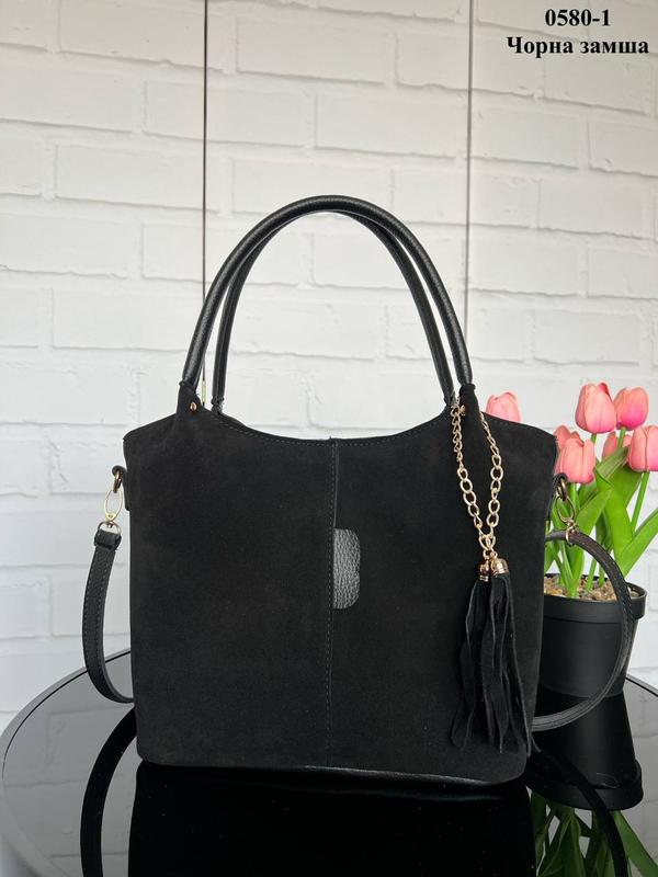 Женская стильная и качественная сумка из натуральной замши и эко кожи черная а4