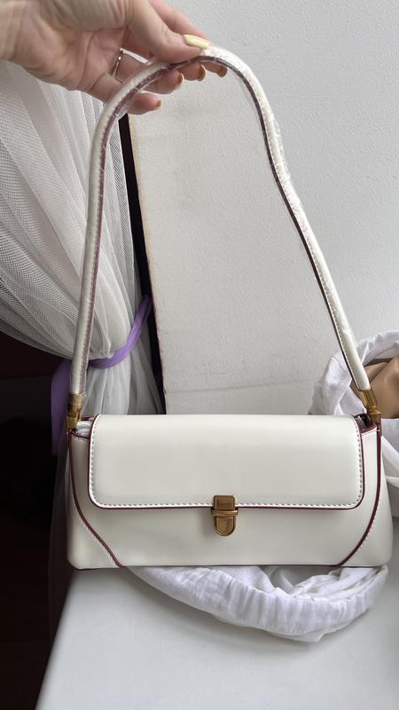 Нова стильна сумка молочного кольору зі вставками нова сумка молочного кольору зі вставками кольору бургунді