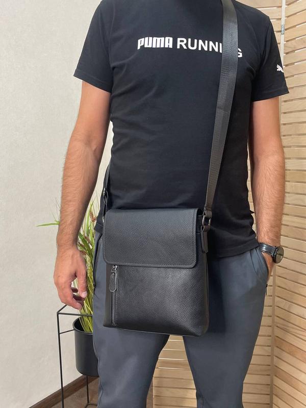 Мужская качественная и стильная сумка мессенджер из натуральной кожи черная