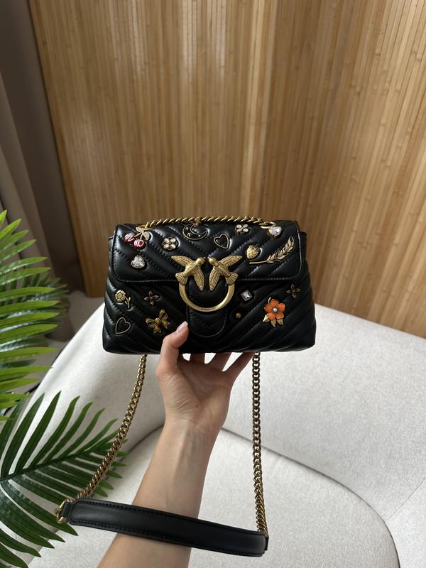 Розмір: 23 х 14 х 6 см Матеріал: Шкіра Сумка виконана з гладкої шкіри, прострочена, прикрашена металевими пінами. Всередині три основних відділення (одне з яких на застібці) та додаткова кишеня з тисненням. Підкладка виконана зі шкіри. Відділення зачиняється на фірмовому механізмі. Фурнітура металева, брендована. Металевий ланцюжок зі шкіряною ручкою регулюється за довжиною для носіння як у руці, так і через плече. Комплектується в брендовій крафтовій коробці та пильовику. Арт: 991019