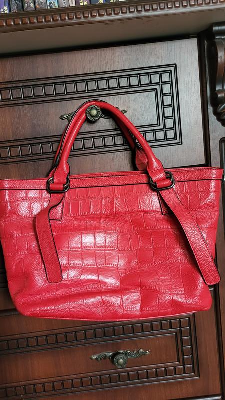 Кожаная сумочка в хорошем состоянии, без дефектов, высота с ручками 38см, ширина 41см. Внутри два больших отделения разделены отделением на молнии, два кармана маленькие, один на молнии.