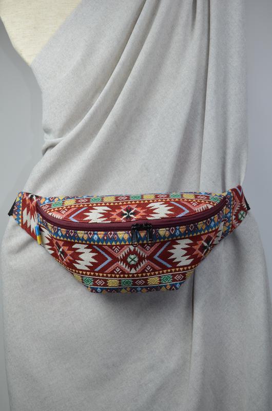 Сумка с этническим узором ❤️ Размер сумочки: 33 см.*18 см. Удобная, легкая и вместительная - идеальный аксессуар для ежедневных прогулок, путешествий или фестивалей. ✨ Особенности: пошита из прочного гобелена; имеет два кармана на молниях; удобный регулируемый ремень; стильный украинский акцент 🇺🇦 Что вместится? Телефон, кошелек, документы, ключи и даже маленькая бутылка воды — все всегда под рукой. Как носить? 🎒 На поясе или через плечо - выбирай свой стиль. 🌿 Практичная и в то же время уникальная благодаря аутентичному орнаменту. Добавь яркости и удобства в свой образ!