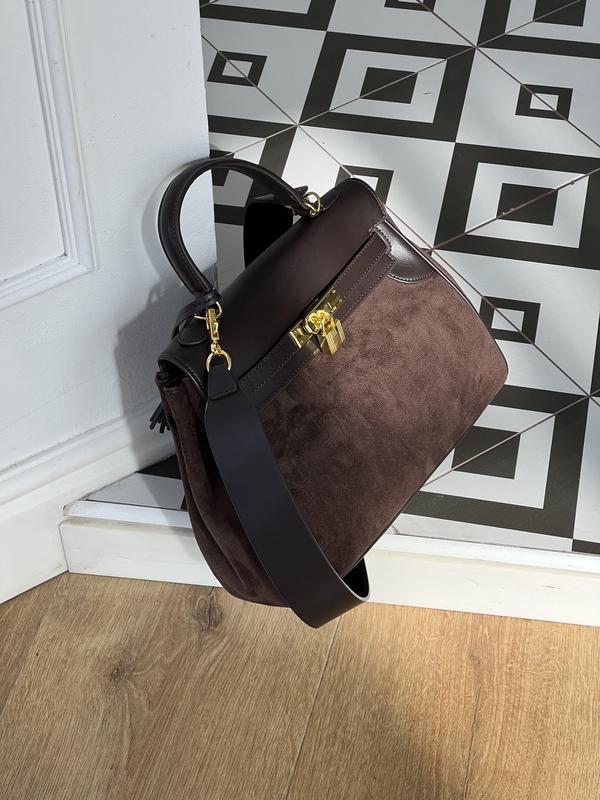 Сумка in Suede-Leather ❤️🔥 ▪️код: шоколад 20076-1 ▪️Розмір: 28*23*9см ▪️Матеріал: шкіра+замша 🔻Опис: Сумка виготовлена з гладкої шкіри з компонуванням замші. Всередині одне відділення, також є кишеня на застібці та відкрита кишеня. Підкладка у сумки з чорної шкіри, в середині тиснення логотипу. Зачиняється завдяки фірмовому механізму з ременями та замочком. Додатково прикрашена брелком з ключиком. Фурнітура металева, брендована в золоті. Має ручку для носіння у руці та широкий ремінець з не регулюємою довжиною для носіння через плече. Максимальна довжина широко ременя 90см ✅Пильовик в комплекті 💰4500грн Для замовлення пишіть в особисті повідомлення 📲