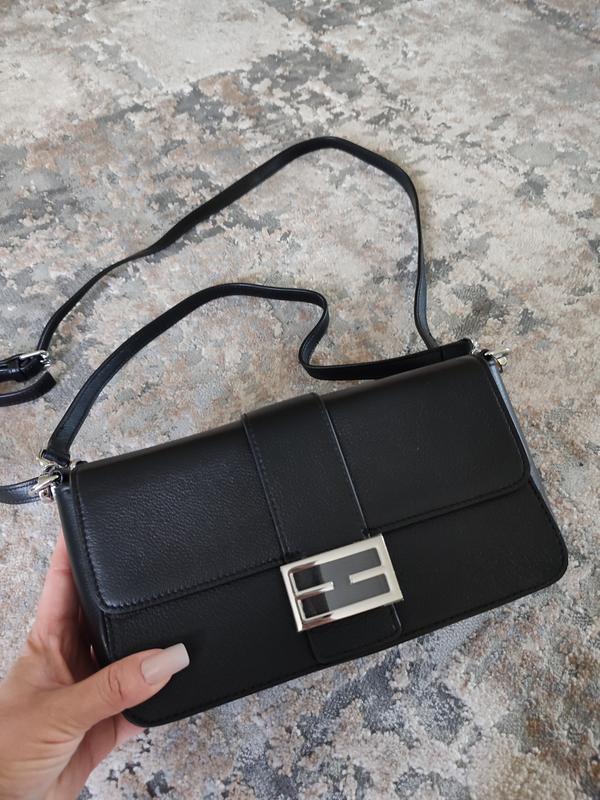 Кожаная сумочка кросс-боди черного цвета,два ремешки в комплекте,размер 26*14*7 см.