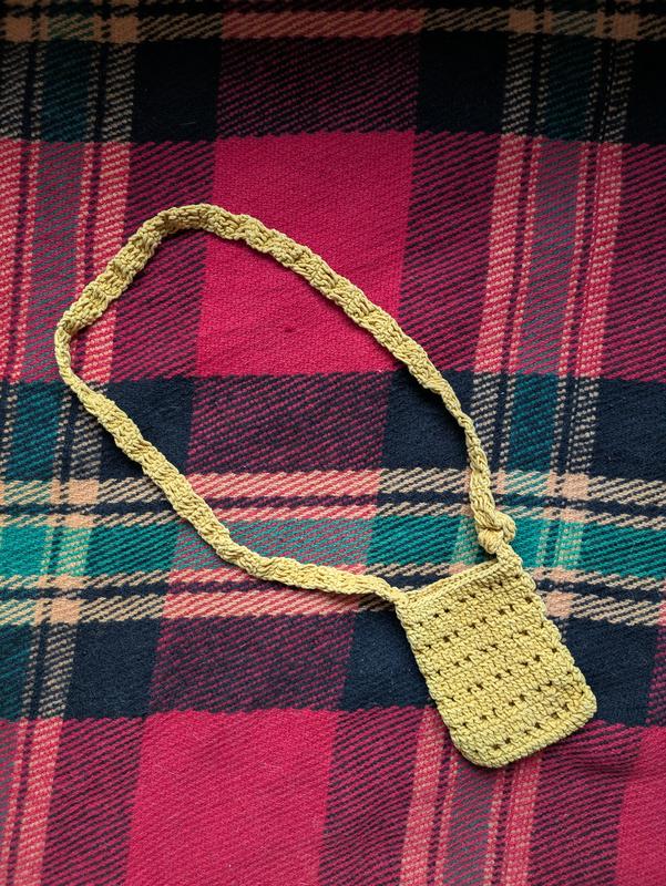 Плетена сумочка. Идеально подойдет для телефона. Размер без ручки - 15 см, с - 70 см