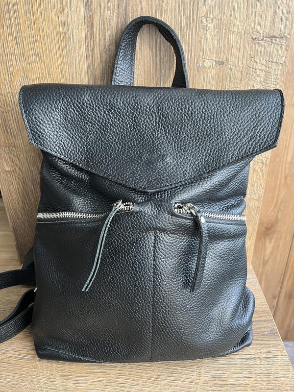 Рюкзак jizuz з якісної зернистої шкіри. Можна носити як сумку, змінивши положення ручок. Практична і якісна річ.