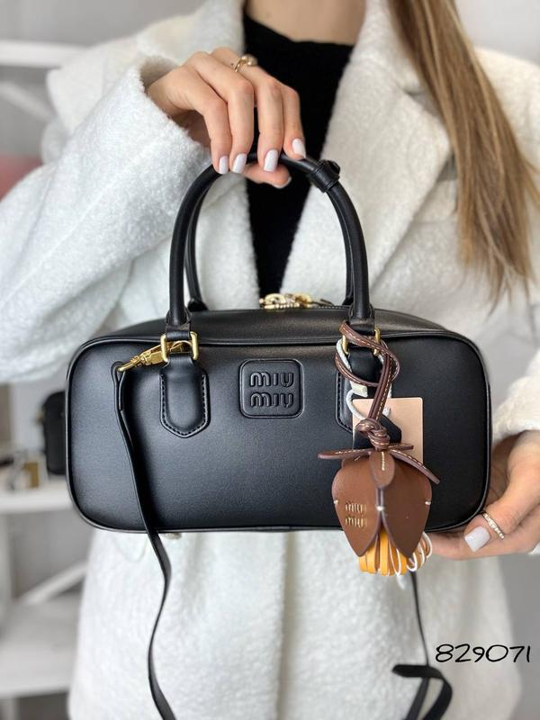 829071 Новинка 💝 Сумка с брелком кожа Материал: натуральная кожа Размер: 28/13/9 Форму держит, ремень регулируется, удобные ручки Цвет: черный, шоколад Все лого Премиум, брелок Miu 🔥