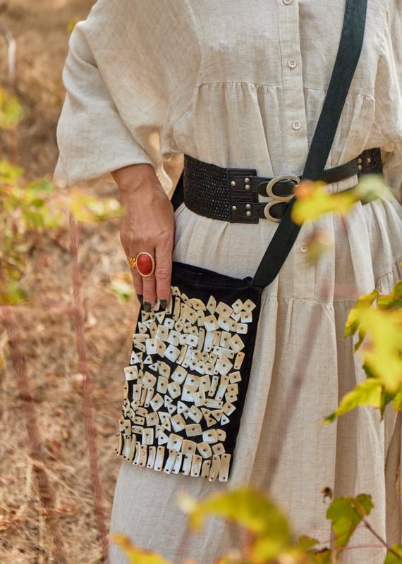 Сумка з декором з мушлі через плече на довгій ручці з оксамиту
