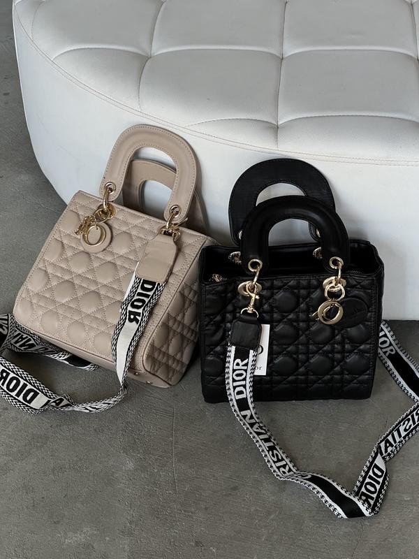 Сумочка Lady велика ЯКІСТЬ ЛЮКС 👑✨ Має одне основне відділення і кишеню всередині. Всередині якісна підкладка. Прикрашена логотипом. Матеріал: еко шкіра + текстиль, тримає форму. Розмір: 25*22*14 см Максимальна довжина ремінця 120 см не регулюється . ⭐️ Без брендового пакування ⭐️ціна : 2699грн