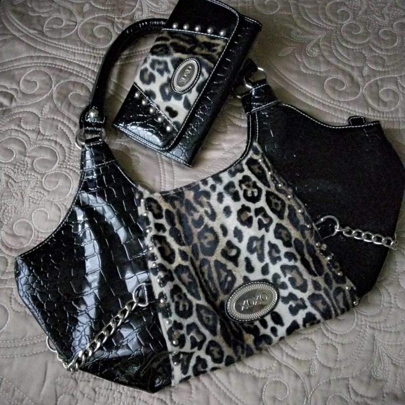 Сумка изготовлена из лакированной искусственной кожи.Встака искусственный мех.На молнии. Американская фирма XOXO Высота сумки 20см+ручки 23см ширина 43см Кошелек имеет 4 отделения для денег,6 отделов для карт, деление для монет и сзади еще один отдел на молнии Длина 20см,Висота 11см См. Более аксессуары на моей странице