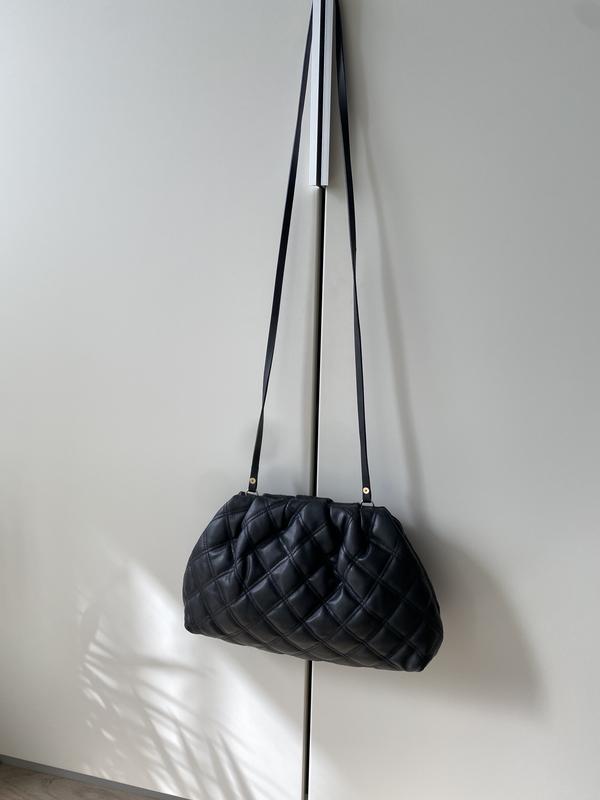 Мягкая сумка на плечо из стеганой искусственной кожи Можно носить как клатч, ремешок отстёгивается НОВАЯ, без бумажной бирки Потайной магнитный замок сверху и узкий ремень на плечо. Внутреннее отделение на молнии. Подкладка из переработанного полиэстера Вес 314 g Состав Покрытие: Полиуретан 100% Подкладка: Полиэстер 100% Материал верха: Полиэстер 100% 100% оплата на карту