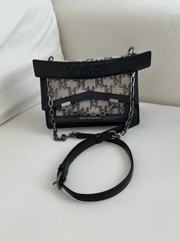 Сумка через плече Karl Lagerfeld чорного кольору. Стан хороший, шкіра не подряпана, кути ідеальні, але вигоріла вишина частина, і на ланцюжковій частині трохи метал почав змінювати колір (але не критично) Дуже вмістка.