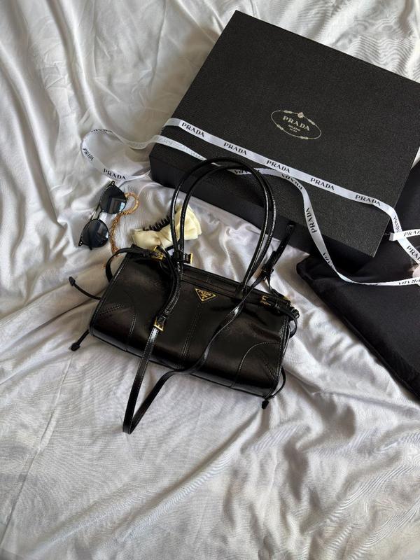Medium Leather Handbag Black Арт: 012502 ▫️ Размер: 32 х 18 х 10 см ▫️ Материал: кожа Сумка выполнена из текстурной и мягкой лакированной кожи. Внутри – одно вместительное отделение и карман на застежке. Подкладка из плотного брендированного текстиля. Закрывается на застежку. Фурнитура металлическая с фирменными тиснениями. Цепочка для ношения через плечо – на карабинах, длина регулируется. ▫️ Комплект: брендовая коробка, пыльник, карточка.