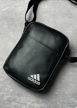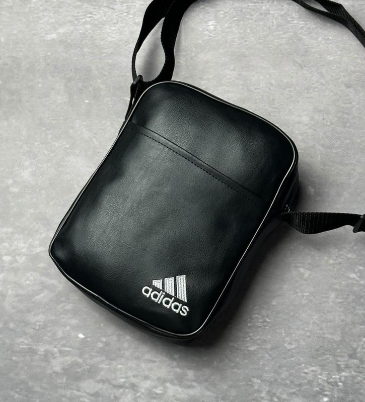 Сумка черная adidas, борсетка кожаная, сумка через плечо, сумка спортивная