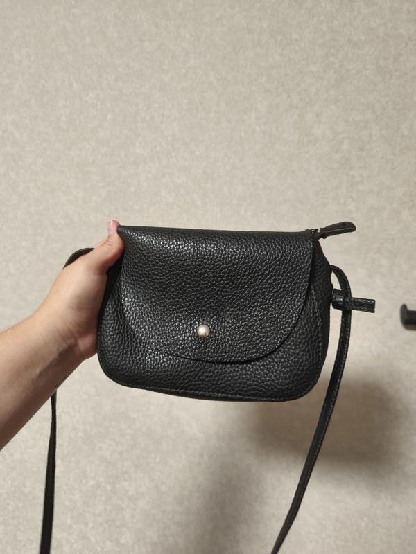 Черная сумка из кожи молодого дермантина) Длина 19 см Высота 14 см Ширина 6,5 см Длина ремешка в носке 67 см (общая длина 134 см). Можно регулировать длину