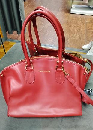 Сумочка Diana Tuscany. Натуральная кожа. Вместительная. Внутри одно отделение и карман на зазоре и один накладной кожаный маленький. есть две ручки плюс одна тонкая длинная. Состояние идеал. Цвет красный.